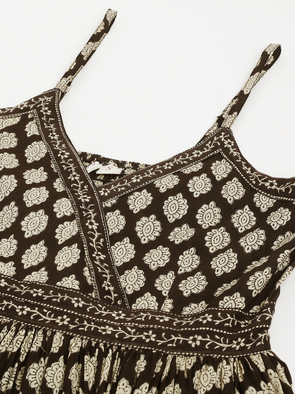 Divena Floral Printed Cotton Empire Black Dress for Women