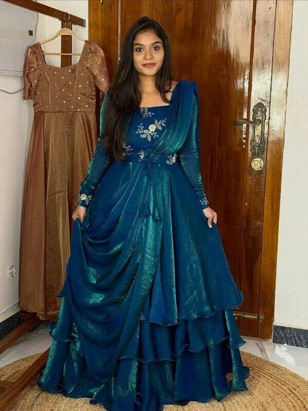 Indulge In Self Love With Divena Navy Blue Gota Patti Plazo Set, Best For Any Festive Occasion. It Has Beautiful Handwork Of Gota Patti Work On Front Neck With Flared Palazzo. Carry It With Minimal Accessory And You Are Ready To Shine.