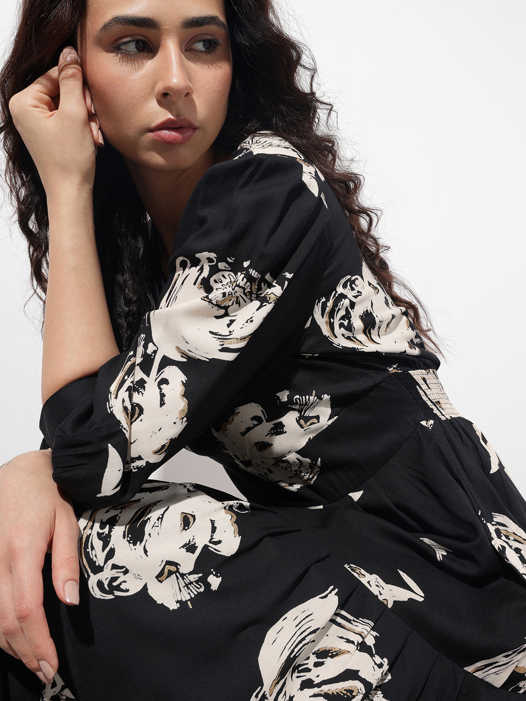 Elevate your wardrobe with our sleek and comfortable black V-neck midi dress. Made with soft and flowy rayon fabric, this dress from Roadster is versatile for any occasion. Shop now and embrace effortless chic.